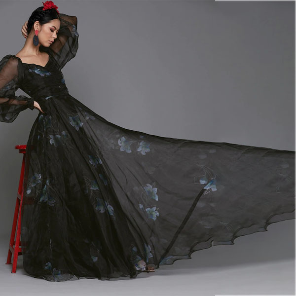 Black & Blue Power Shoulders Floral Printed Maxi Dress