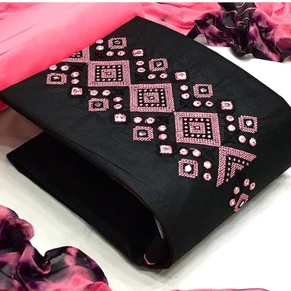 Black and pink embellished unstitched dress material