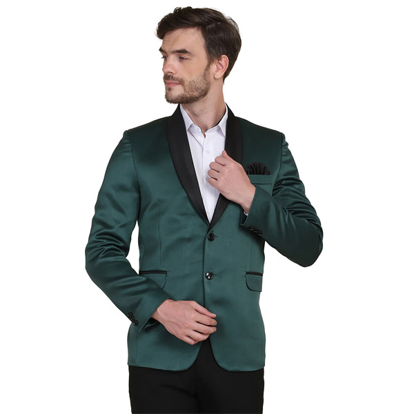 Green Solid Tuxedo Formal Blazer