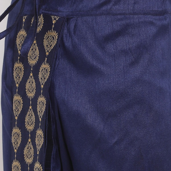 Men Navy Blue Embroidered Dhoti