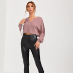 Waffle (Cotton) Long Sleeve 2025 Fall Fashion V Neck Basics Crop Tops Slim Fitted T Shirts