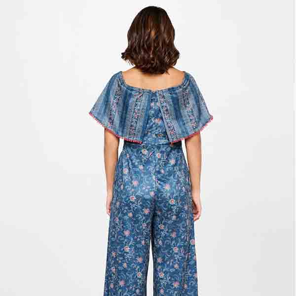 Women Blue & Red Floral Printed Basic Jumpsuit