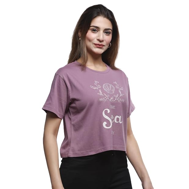 Women’s Casual Crop Tee | Short Sleeve T-Shirt with Aesthetic Print | Soft Cotton Blend